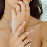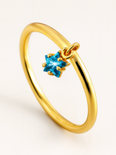 Anillo Bianca Blue, realizado en una serie de metales nobles con baño de oro de 18k y con una circonita azul engarzada que hará que se mantenga como el primer día aunque no te lo quites nunca.