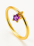Anillo Bianca Violet, realizado en una serie de metales nobles y acabado en brillo con una circonita violeta engarzada que hará que se mantenga como el primer día aunque no te lo quites nunca.