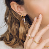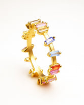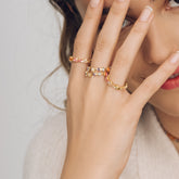 Anillo Meraki, realizado en una serie de metales nobles con baño de oro de 18k y circonitas de colores engarzadas que hará que se mantenga como el primer día aunque no te lo quites nunca.