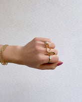 Anillo Pearl, realizado en Acero Inoxidable con baño denso de oro de 18k y acabado en brillo que hará que se mantenga como el primer día aunque no te lo quites nunca.