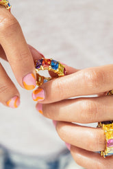 Anillo Rainbow, realizado en plata de ley 925 con baño de oro denso de 18k y circonitas engarzadas que hará que se mantenga como el primer día aunque no te lo quites nunca.