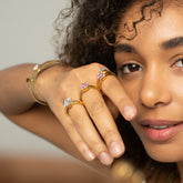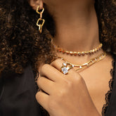Realizado en acero inoxidable con un elegante chapado en oro de 18k, este anillo está diseñado para mantener su brillo impecable con el paso del tiempo, incluso si lo llevas cada día.