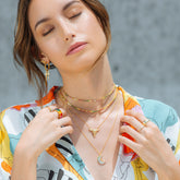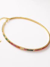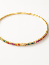 Choker Glow Multicolor, realizado en acero inoxidable con baño denso de oro de 18k y circonitas de colores engarzadas que hará que se mantengan como el primer día aunque no te lo quites nunca.