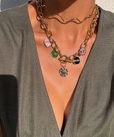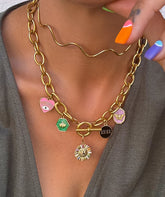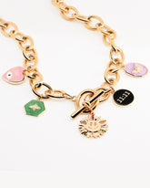 Collar con charms, realizado en Acero Inoxidable con con baño denso de oro de 18k que hará que se mantengan como el primer día aunque no te la quites nunca. Largo total de 40cm.