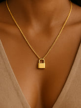 Un diseño moderno y minimalista con forma de candado, símbolo de fuerza y protección. Elaborado en metales nobles con un baño de oro de 18k de alta densidad, conserva su brillo y calidad como el primer día, incluso con uso diario.