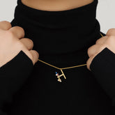 Collar Letra H, realizado en Plata de Ley 925 con baño denso de oro de 18k y circonitas de colores engarzadas que hará que se mantengan como el primer día aunque no te lo quites nunca. Largo total de 50 cm + 15 cm de extensión para ajustar a la medida deseada.