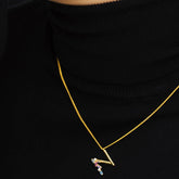 Collar Letra N, realizado en Plata de Ley 925 con baño denso de oro de 18k y circonitas de colores engarzadas que hará que se mantengan como el primer día aunque no te lo quites nunca. Largo total de 50 cm + 15 cm de extensión para ajustar a la medida deseada.