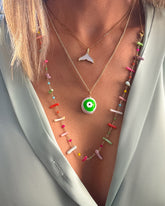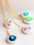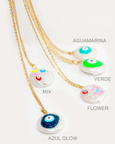 Collar Nazar, realizado en acero inoxidable con baño denso de oro de 18k que hará que se mantengan como el primer día aunque no te lo quites nunca. Largo total de 45cm ajustable a la medida deseada.