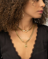 Collar Zia, realizado en acero inoxidable con chapado en oro denso de oro de 18k que hará que se mantengan como el primer día aunque no te la quites nunca. Largo total de 50cm, ajustable a la medida deseada.