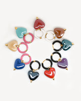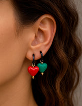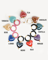 Pendientes Amour, estos sofisticados pendientes de aro están diseñados con corazones de cerámica colgantes, los aros están bañados en esmalte con colores inspirados en el invierno. Los tonos fríos y cálidos elegantes, como el azul bondi, el rojo pasión y el marrón chocolate, aportan un toque de serenidad y estilo a cualquier conjunto. Los aros están hechos de acero inoxidable de alta calidad, con un lujoso baño de oro de 18 quilates que añade un brillo duradero y una resistencia excepcional. Perfectos para cualquier ocasión, estos pendientes combinan la delicadeza de la cerámica con la robustez y el glamour del oro, creando una pieza de joyería que no puede faltar en tu colección.