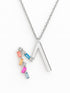Collar Letra M, realizado en Plata de Ley 925 con acabado en brillo y circonitas de colores engarzadas que hará que se mantengan como el primer día aunque no te lo quites nunca. Largo total de 50 cm + 15 cm de extensión para ajustar a la medida deseada.