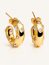 Pendientes Aro Winney, realizados en Acero Inoxidable chapados en oro de 18k y circonitas engarzadas, el diámetro total del aro es 2cm.