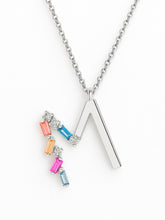 Collar Letra M, realizado en Plata de Ley 925 con acabado en brillo y circonitas de colores engarzadas que hará que se mantengan como el primer día aunque no te lo quites nunca. Largo total de 50 cm + 15 cm de extensión para ajustar a la medida deseada.